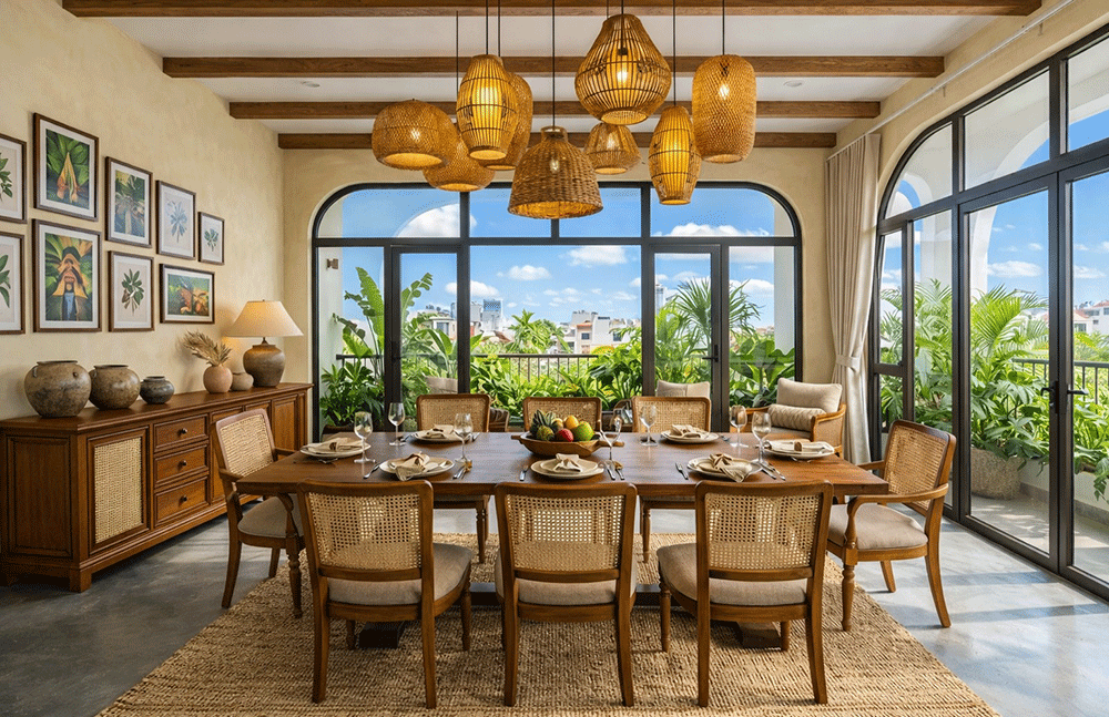 5.6 Ghế ăn kết hợp mây mắt cáo – Vẻ đẹp tự nhiên & tinh tế